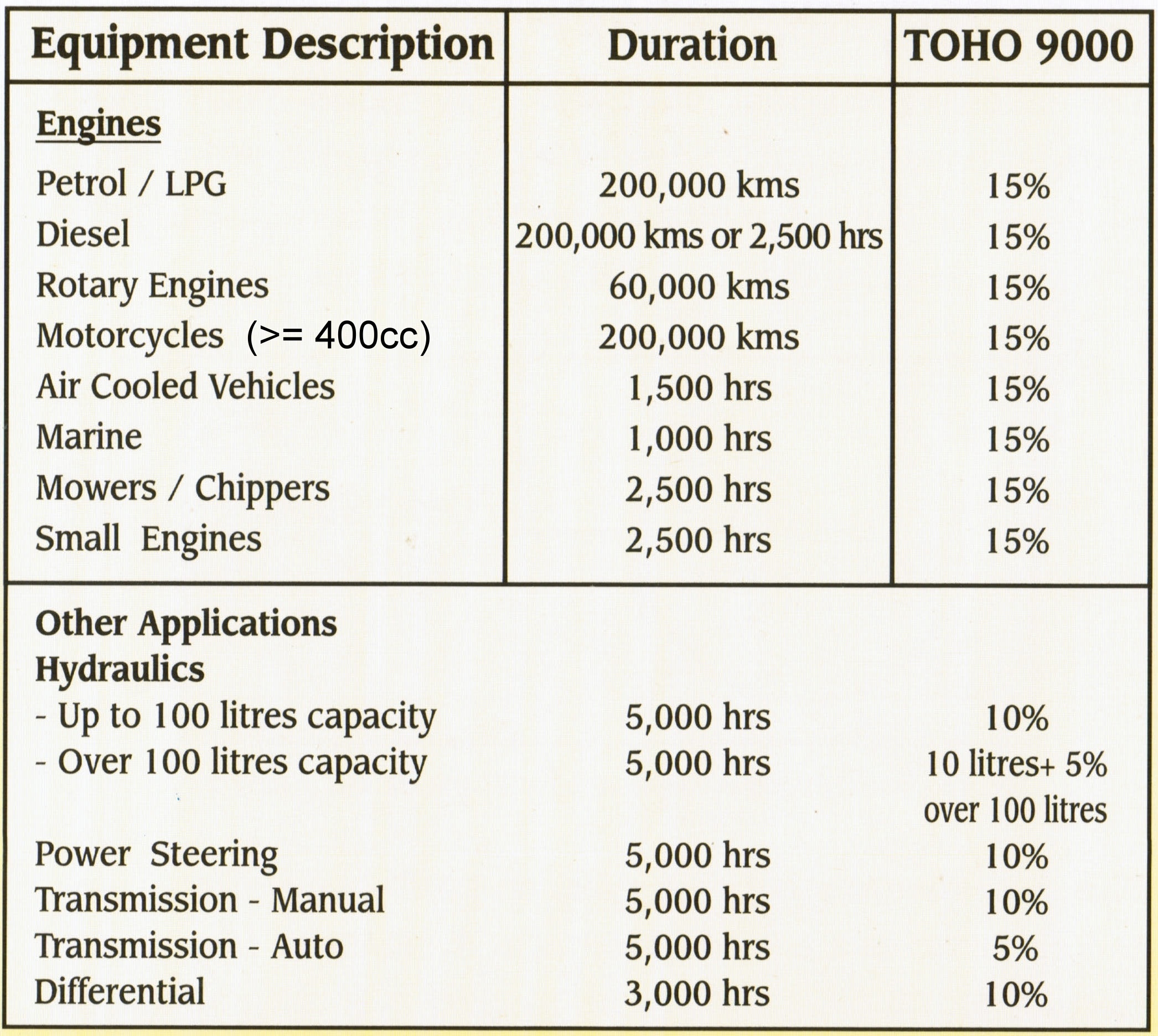 - TOHO 9000 is NOT recommended for two-stroke engines.